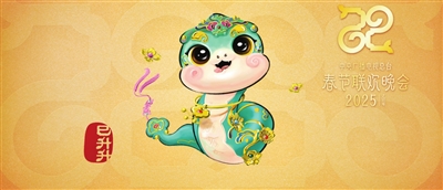 2025蛇年春晚吉祥物整体造型参考甲骨文中的“巳”字,憨态可掬又富有古意。头部轮廓与脸颊上的螺旋形状来源于陕西扶风法门寺唐代地宫出土的银质鎏金如意,从头部的蝙蝠装饰到尾巴点缀的寿字盘长结,通身典故寓意着“福从头起,尾随如意”。