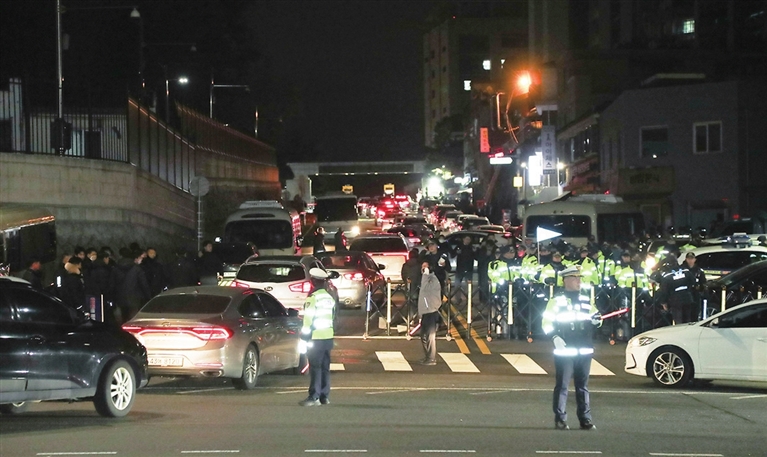 与此同时,戒严部队前去封锁国会。直升机在首尔上空飞过,装甲车队隆隆穿过首尔市区。4日零时许,戒严部队开始进入国会大楼。