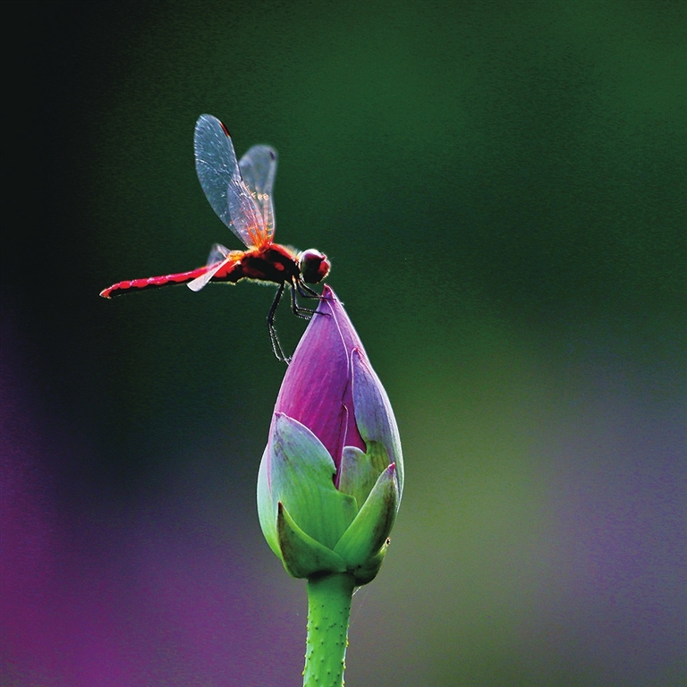 弄影荷花,过去以南方为多,得益于丰富的湖泽资源。现在北方亦盛,太原宜居城市建设,使生态性、观赏性水系渐为完善,使得公园荷池、景区荷塘如珠缀串。荷花拍摄,怎样算好?因为各人审美眼光不同,不能一概而论。但也有共识,即荷花入镜的新意与美感。具体说,可总结为三个方面:一是要有意趣。如蜻蜓立在花尖,如鸟雀攀在茎上,如蛱蝶挂在叶边。还如,买来摄影用烟饼,点燃后,让花间叶上烟雾缭绕,一如仙境。二是要具姿态。拍荷花有“宏观”,更有“微观”。即,在“接天莲叶无穷碧,映日荷花别样红”的大场景下,不妨选单茎或几茎拍摄,做荷花姿态的近景演绎。从一定意义上讲,此最能体现荷的本色,红瓣殷殷,翠干亭亭,碧叶田田。三是要生格调。荷花摄影,多在日光下进行,但在无日光的雨天拍摄,也有奇效,即花叶吃色饱满,会溢出湿淋淋的画意。而月光下拍荷,就能收获朱自清《荷塘月色》中所写的“叶子与花仿佛在牛乳中洗过一样”的光影味道。