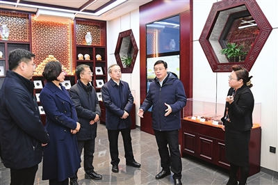 千年钟楼街古韵新潮、人气旺盛,先后被评为国家级旅游休闲街区、国家级夜间文化和旅游消费集聚区。在中华老字号“乾和祥”茶庄,韦韬详细了解茶庄历史文化、技艺传承、改革创新等情况,仔细察看陈列展品和在售产品,感受源远流长的茶文化。他说,“乾和祥”茉莉花茶传承百年而历久弥新,要坚持守正创新,统筹做好茶文化、茶产业、茶科技这篇大文章,加大市场推广,让“乾和祥”缕缕茶香飘向全国。随后,韦韬听取市供销社工作情况汇报,对供销社整合资源力量推动“乾和祥”等社有企业创新发展给予肯定,要求深入学习贯彻习近平总书记在中华全国供销合作总社成立70周年之际作出的重要指示精神,扎根农业农村、聚焦主责主业,深化综合改革、强化机制创新,扎实做好农资供应、农产品流通、农业社会化服务、再生资源回收利用等重点工作,打造用好“太原好货”等综合服务平台,建强供销服务体系,不断提升为农服务能力水平,为推进城乡融合发展、乡村全面振兴作出新的贡献。