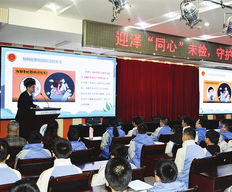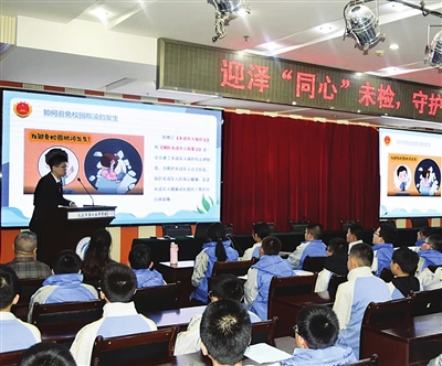 活动中,检察干警围绕“什么是校园欺凌”“校园欺凌的表现形式”“校园欺凌的危害”,以及“怎样防范和化解校园欺凌”“刑事责任年龄”等内容,深入浅出讲解了防范校园欺凌的相关知识。同时,检察干警结合相关案例,鼓励引导同学们敢于向校园欺凌行为说“不”,学会用法律武器维护自身权益,谨慎交友,自觉抵制不良行为,远离违法犯罪活动。