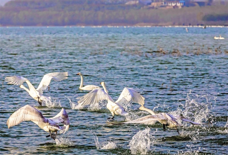 占地6000多公顷的山西平陆黄河湿地位于山西、河南两省交界处,这里气候温和、采食丰富,非常适宜白天鹅越冬,是我国白天鹅越冬的重要栖息地之一。近年来,随着平陆黄河湿地生态环境不断改善,每年到此越冬的白天鹅数量在1万只左右。
