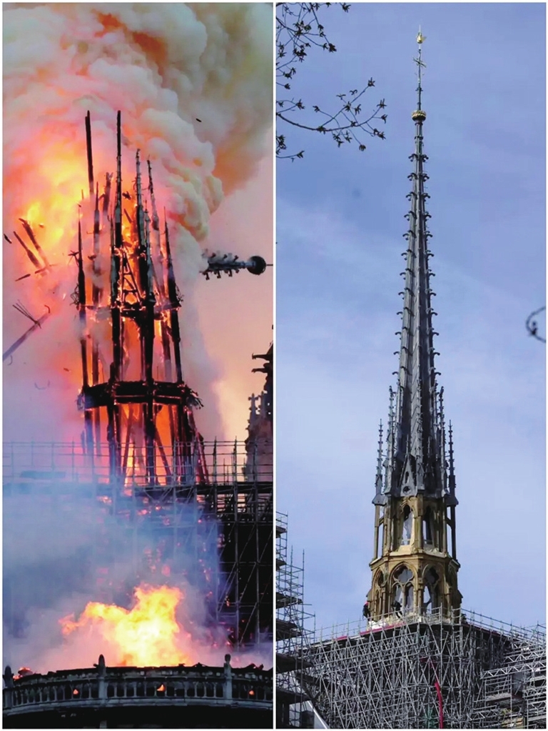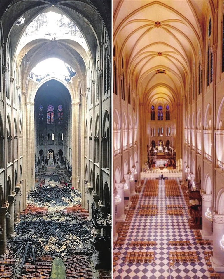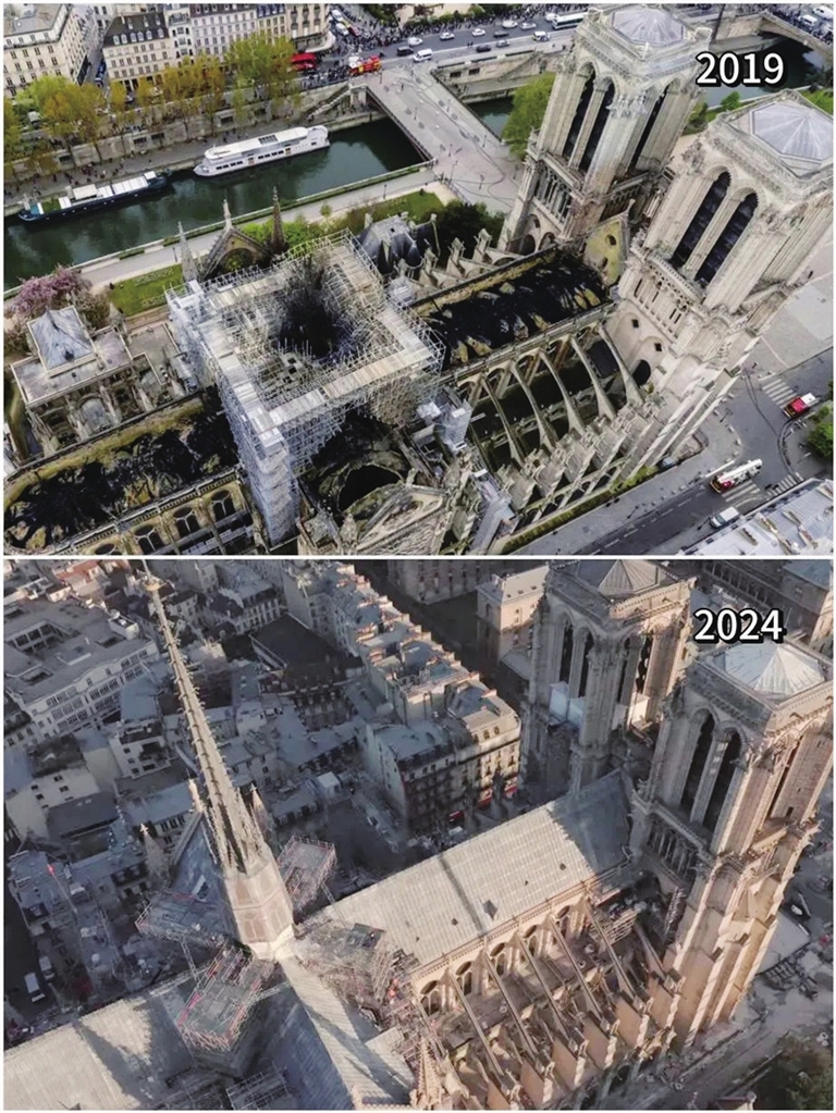 其次,科技创新发挥了重要作用。据法国文化部介绍,火灾发生后,文化部与法国国家科学研究中心联合启动了一项汇集多个研究团队的修复与科研项目,从石料和灰浆、木材和框架、建筑结构、金属、玻璃、声学、数字数据采集和人类学8个方面开展研究,对巴黎圣母院进行全面系统的梳理研究,为修复重建提供翔实的数据和资料支持。