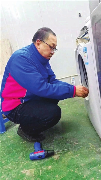 小区11号楼的九旬空巢老人王大爷,每隔一段时间就会找万学文帮忙。老人年纪大了,家里的电器都是老旧机器,经常出故障,一会儿电视机不出图像了,一会儿洗衣机不转了,一会儿热水器不加热了,王大爷每次打电话求助,万学文从没有怨言,随叫随到,无论多棘手的问题,他都会凭借丰富的维修经验,仔细调试维修,直至修好。