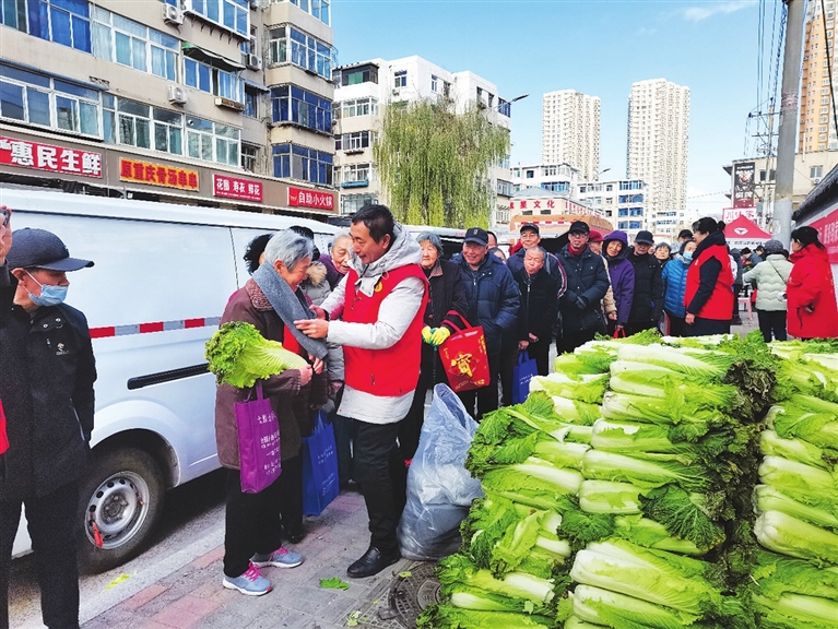 杏花红志愿服务队还为孤寡、高龄、独居老人免费发放白菜、围巾、帽子等,将爱老、敬老落到实处。