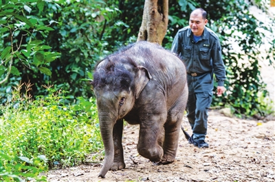 “除了日常的健康监测、喂食之外,我们每天会带小象到野外开展训练,保持其野外生存能力。”“象爸爸”莫诗宇说,目前,小象尚未取名,中心计划向网友征集小象名字。