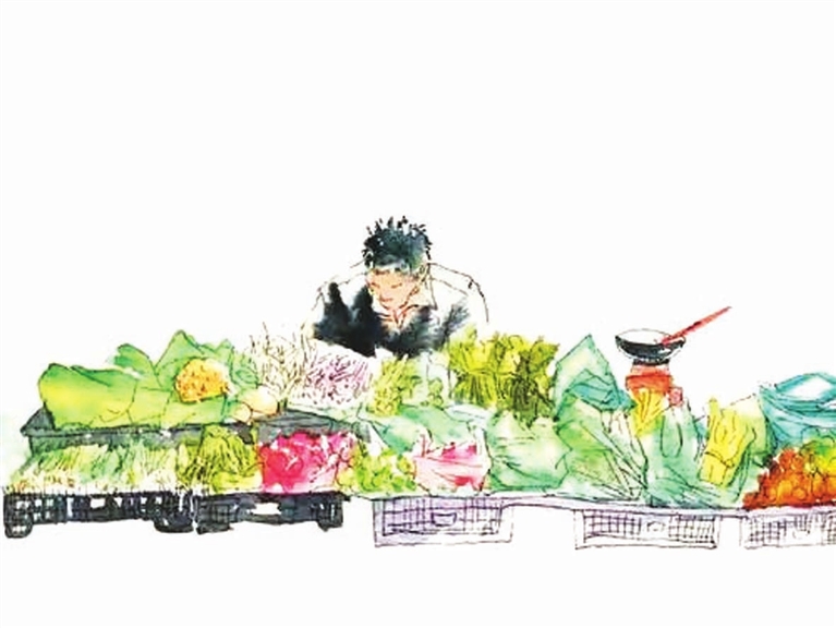 走着,看着,不时蹲下身子,瞅那些沾着泥土、挂着露水的新鲜蔬菜,内心喜不自禁。各样果蔬的颜色是多么养眼啊,碧绿的黄瓜、通红的辣椒、金黄的南瓜、深紫色的茄子,热热闹闹地挤在一起,让人爱不释手。买完回家的路上,心中盘算着各种烹饪法。用心做好一道菜,就是对它们最高的礼遇和不辜负。