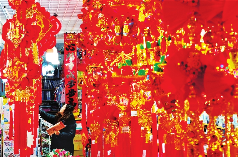 随着新年临近,节庆装饰用品销售开始升温。12月13日,在我市服装城一小商品批发市场内,新年饰品随处可见,受到消费者青睐。