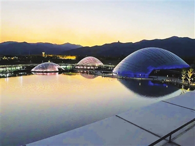 顺应自然,太原植物园的景观装饰灯应时亮了,顿时,周围的一切都变了,人群一阵骚动,迅速改变自己的注意目标。灯亮前,这里像一个不施粉黛的妇人,华灯初上,氛围立时焕然一新,宛若大舞台上出现盛装的舞女,袅袅婷婷,热烈奔放,多姿多彩,活泼可爱。热带雨林馆、沙生植物馆、四季花卉馆像三朵硕大的彩色水滴从天而降,背后是如黛的太山,天幕有灿烂辉煌的落日余晖,水滴上的彩灯赤橙黄绿青蓝紫,闪闪烁烁,倒映在平静宽阔的好问湖上,波光粼粼,微微风簇浪,散作满湖星,湖中黑天鹅和鸭群自由自在地游弋,这一切构成了一幅神奇美妙难以描摹的水墨丹青,又好似浓墨重彩的油画,清新淡雅的水彩画,是人与自然共同创造了这里独特的美。好问湖东面,造型奇特、别具匠心的观景台周围及顶上布满了灯,如繁星点点,透过圆形电梯出口,天空、彩云、繁星,虚虚实实,真真假假,是时空的穿越,是想象的跳跃。好问湖边人影幢幢,几多情侣,几多闺蜜,拉家带口,扶老携幼,喂鱼的、逗鹅哄鸭的、赏景的、拍照的、聊天的,各得其所,各行其是,好不热闹。