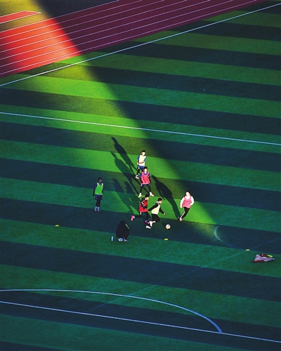 12月17日,小店区第三中学,学生们在绿茵场上感受足球魅力,享受运动带来的快乐。