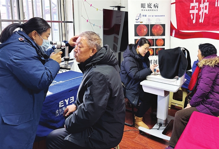 12月17日,迎泽区郝庄镇经园路一社区邀请医务工作者开展爱眼护眼义诊活动。现场,医务人员为居民检测视力,筛查白内障、干眼症、青光眼等多项眼部疾病,普及爱眼护眼知识。 王金国 孙舒婷 摄影报道