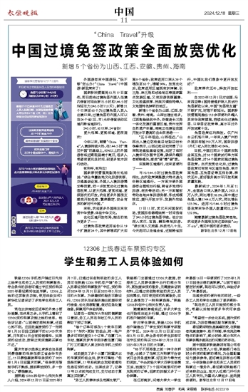 重庆市彭水苗族土家族自治县居民蔡淮墨的母亲在浙江省金华市务工,15日蔡淮墨就帮母亲预约了2025年1月6日回重庆的票。“母亲使用智能手机不熟练,提前帮她预约,多一份安心。”蔡淮墨说。