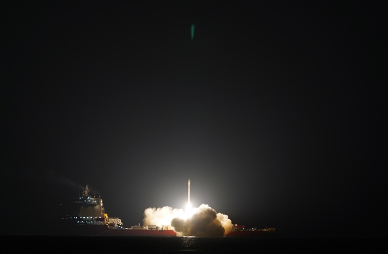 12月19日18时18分,我国太原卫星发射中心在山东附近海域成功发射谷神星一号海射型遥四运载火箭,搭载发射的天启星座33-36星顺利进入预定轨道,飞行试验任务获得圆满成功。 新华社 发