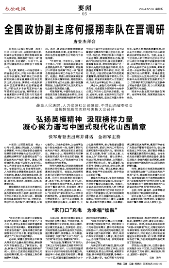 最高人民法院、人力资源社会保障部、中共山西省委员会追授韩旭辉同志称号表彰大会召开~~~张军唐登杰出席并讲话 金湘军主持
