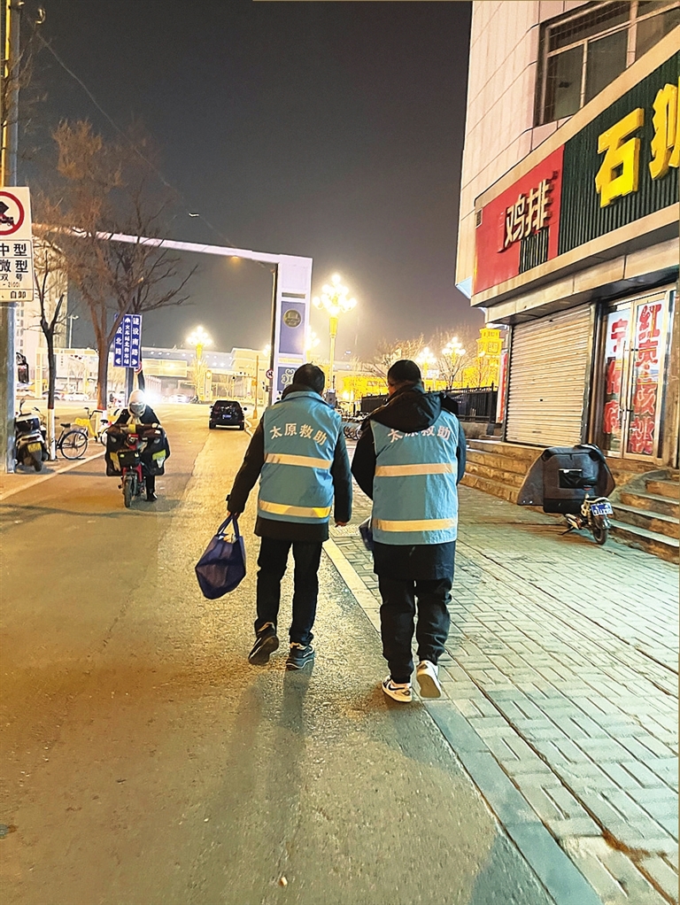夜已深,他们继续寻找,把温暖送给需要帮助的人。