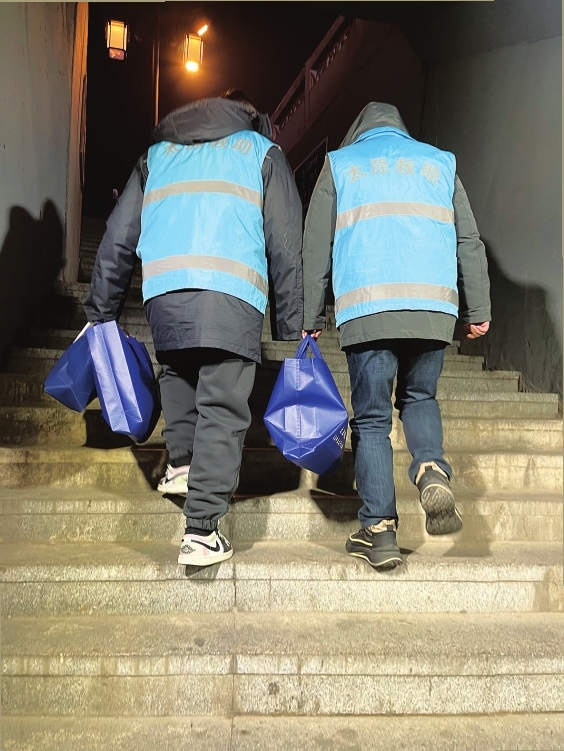 北仓大厦附近的地下通道,是农民工和流浪乞讨人员可能露宿的区域。为了确保每位遇困滞留该区域的人员都能得到及时、有效的救助,迎泽区民政局积极动员社会力量参与救助工作,采取有针对性的救助措施,提高救助服务的精准度和时效性。