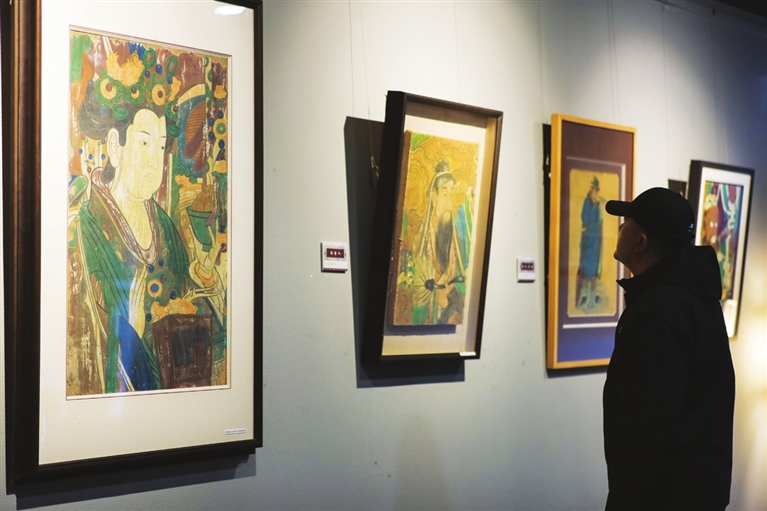 12月22日,“大鸣堂山西寺观壁画展”在太原市图书馆开展,共展出大鸣堂非遗传承人张放及其弟子壁画作品40余幅,向观众展示山西壁画和古建艺术的独特魅力。 王韵菲 摄