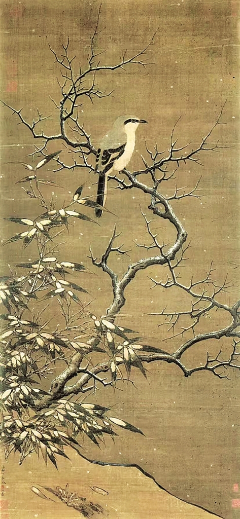 《雪树寒禽图》(局部) 宋·李迪 绢本设色 纵116.1厘米 横52.9厘米 上海博物馆藏