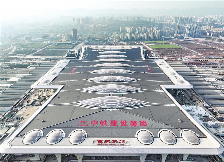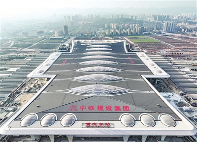 目前,由中铁建设等单位承建的重庆东站站房及配套综合交通枢纽工程正加紧建设,进展顺利。
