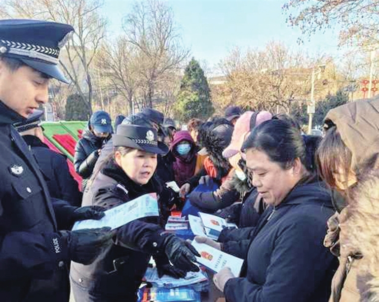 12月27日,古交市公安局国保大队、网安大队、巡警大队、东曲派出所,在市民广场开展“全民反恐 共创平安”反恐怖宣传教育活动。民警通过设立咨询台、发放宣传资料等形式,宣讲反恐知识,让群众认清暴恐危害,劝导群众不观看、不传播网络暴恐音视频,引导群众增强自身防护意识,在遇到突发事件时沉着应对及时报警。 刘友旺 摄