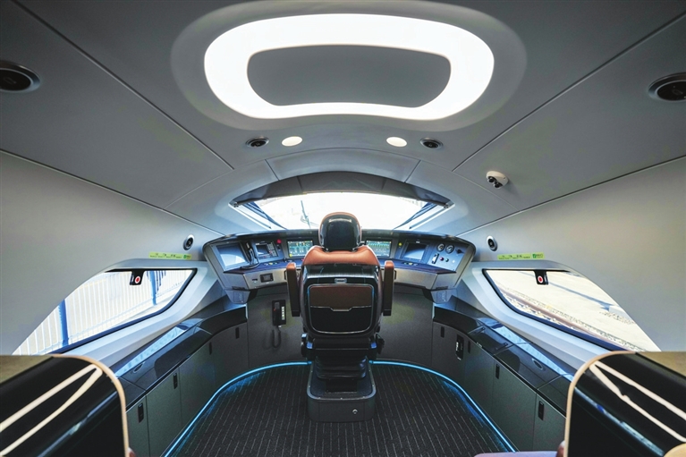 “身高”从4.05米下降到3.85米,但走进车厢,记者感受到内部空间更大。“通过集成化、小型化设计,在列车体积减少5%的同时,旅客使用面积增加4%,两端大件行李存放区域增加了138%。”CR450AF动车组制造商中国中车四方股份公司副总工程师陶桂东说。