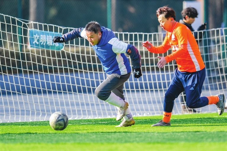 虽然冬日气温低了些,但是绿茵场上并不缺少“温度”。比赛哨声响起,球员们一个个甩开膀子飞奔,仿佛仍是青葱少年。你秀一记“马赛回旋”,我来一个“油炸丸子”,引来阵阵喝彩欢呼。