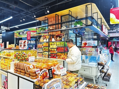 “你看,进门右手边是礼品中心,一站式满足顾客送礼需求;卖场内则极具烟火气,餐品熟食、海鲜加工、猫山王榴莲、火锅专区等逐一呈现。作为‘调改’标杆店,我们从环境、设施、服务等多方面优化升级,旨在为顾客打造有温度的消费场景。”副店长程俊敏介绍。