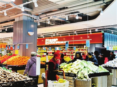 1月2日,记者在亿家亲购物广场看到,尽管是工作日,但超市内蔬菜、水果、肉类等生鲜区域的顾客仍不少,一派热闹景象。“从2024年10月开业至今,顾客一直很多,我们累并快乐着。”一位超市员工告诉记者。