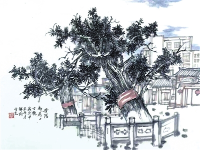 柳巷古槐(写生画) 解刚 绘