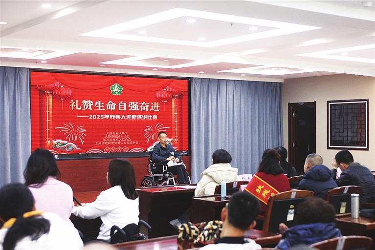 一月八日,太原市残疾人联合会在残疾人综合服务中心举办“礼赞生命 自强奋进”二〇二五年残疾人迎新演讲比赛。 张澍宏 摄