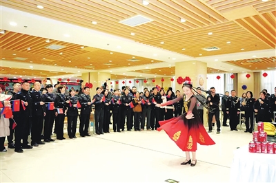 随后,一首首经典歌曲接连唱响。民警深情演唱《如愿》,温柔的歌声诉说着他们守护平安、让岁月静好的心愿;欢快的《一杯美酒》,让活力四射的民、辅警们载歌载舞,欢乐的笑声此起彼伏;豪迈的《人间道》,唱出了人民警察行走人间、捍卫正义的坚定信念,让大家心中的使命感油然而生。