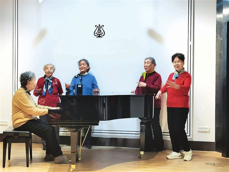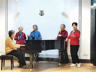 最后,4位平均年龄80岁的朋友,跟着伴奏音乐唱起了一首经典校园歌曲《踏雪寻梅》。几个人轻松俏皮的二声部轮唱与齐唱的演绎,仿佛将大家带到了年轻时代,赢得了阵阵掌声。