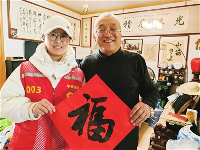 为传承中华优秀传统文化,营造喜庆祥和的节日氛围,1月12日,新城北街社区开展“笔墨迎新春 春联送祝福”活动。社区邀请辖区书法爱好者挥毫泼墨,书写满载美好祝愿的春联,并将其送给辖区居民,传递社区对居民的美好祝福。 郭晓华 韩青芸 摄
