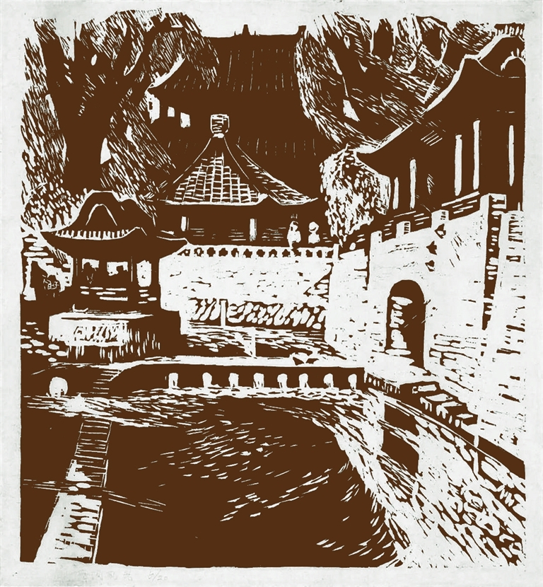 晋祠的冬天,褐黄成为主色调。凋落了叶子的树枝光秃秃的,偶尔有一只斑鸠缩着脑袋栖落在树梢,游人也稀稀落落。喧闹了许久的晋祠变得恬静优雅,就连鱼沼飞梁里的锦鲤也懒洋洋地一动不动,殿堂楼阁仿佛被冬天施了魔法,安静地沉睡着。冬天,我总是盼着下雪。那时的晋祠宛如童话世界,皑皑白雪覆盖了整个世界,只有松柏戴着白色的雪帽,绽放着绿色的笑脸。一座座古建在浓稠的雪雾中,依然展现着千年不变的红色。站在圣母殿前,极目远眺,似乎可以望见整个晋祠,如同浓墨渲染、素笔描绘的画卷。