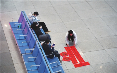 上午9时,太原南站高架候车厅内,来自太铁一线的书法爱好者们挥毫泼墨,为旅客们书写一份份祝福。手拿对联的乘客们,在这里感受着温情,让回家的路不仅是物理上的迁徙,更是心灵的归宿。这份文化的传承和情感的交流,让春运的回家路变得更加有意义。