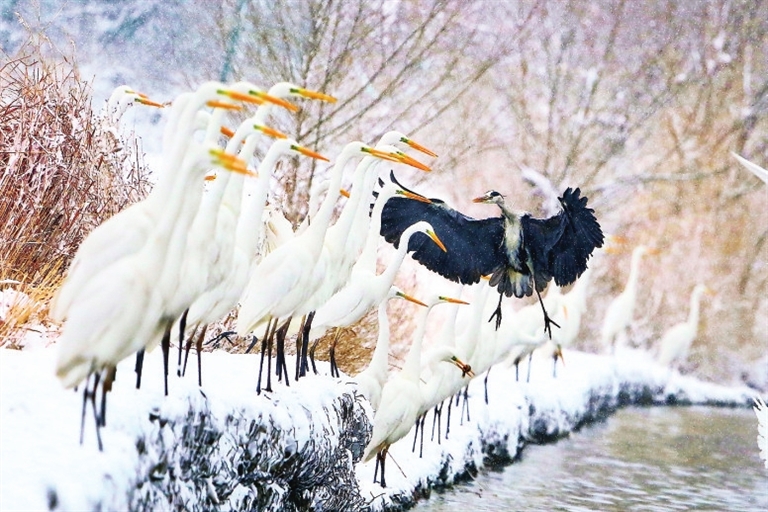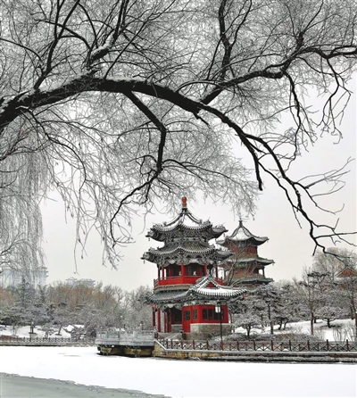 落雪是天公的涂抹,如蝶翻素,似月布银,被它“简化”后的景象,也很合摄影是“减”的艺术之说:即减除画面的拥塞,代之以疏朗的表达。这里就涉及“极简风”或“极简主义”的审美诉求。这并非是说“极简”归为雪景,是指雪景提供了一个相类似的极好机缘,即大自然对色彩纷乱、画面芜杂的天然屏蔽。摄取“极简”的雪景,不能不说到明人张岱的《湖心亭看雪》,这是写雪景近于极致的古文名篇,也可说是文字版的摄影极简风格教材。节录如下:“大雪三日,湖中人鸟声俱绝……雾凇沆砀(沆砀,荡漾之意),天与云,与山、与水,上下一白。湖上影子,惟长堤一痕、湖心亭一点,与余舟一芥,舟中人两三粒而已……”出神入化,是白描手段中的“白”描,将一种雪景勾勒至唯美境界。雪景摄影的画面感也是如此,删繁就简,以少胜多,只在寥寥数笔的线条与淡淡几抹的影像中读出蕴意。又则,在绘画语言中讲“留白”,也即有意空出地方,让读者的想象填充。雪景风光片中成为本身的优势所在,那不留反留,以白写白,虚实相生,形神合一。还是那句话,取景框后,是一双发现的眼睛和一个别致的构想。