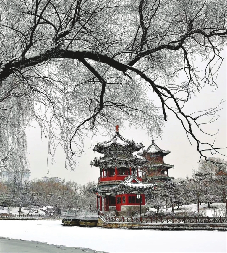 雪景拍摄,还有一种很好的思路值得实践:即对名胜地标的“四季留影”。举例说,如凌霄双塔,如蒙山大佛,如晋祠侧柏,如太山金顶等,它们在春、夏、秋三季,着绿、覆荫、落黄;而在冬,则是裹素。将各景选定同一机位,应季节拍摄四片,合为四季组照,一睹间,画意流淌,时序飞转。于是,盼雪来。