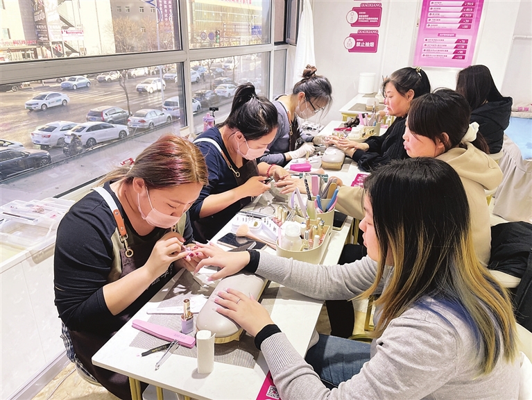 西华苑东社区网格员侯梓萌到商铺宣传反诈时,见辖区几处美甲店都很热闹,有不少顾客在等待。一家美甲店的负责人介绍,现已迎来行业旺季,顾客需要提前一天预约。每名顾客平均要2个小时,现有的人手忙不过来,招了几名美甲师临时“救场”。