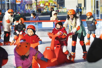 1月19日,省城某户外溜冰场,孩子们尽情享受冰上运动的乐趣。“双减”下的寒假,运动场上随处可见学生们快乐的身影。