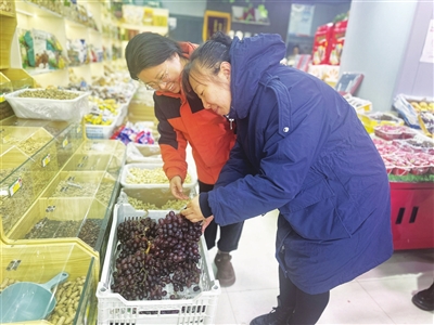 叶琳也挺着急,当即找到同事张晓婕商量对策。二人决定帮忙,与辖区店铺商量,看能不能代销。金鼎便利店的经营者郭晓颖是个热心肠,听了经过后,爽快同意。刘强非常高兴,大家一起将葡萄卸车,搬入便利店的仓库里。两名网格员只要有空就来店里推销。刘强说,这次不图挣钱,只要个成本价就行。在网格员的催促下,夫妻俩回了老家,去照顾孩子。