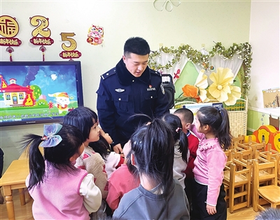 1月17日,庙前派出所民警为省委机关幼儿园的孩子们上了一堂生动的安全教育课,通过活泼有趣的互动游戏,引导孩子们掌握交通安全、消防安全知识,平安过寒假、迎新春。 辛欣 摄