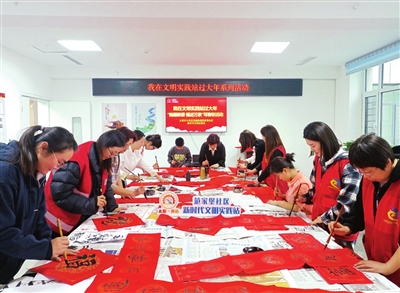 1月22日当天,在大马社区和范家堡社区的写春联活动现场,书法家们与居民们一起写春联、送福字、迎新春。