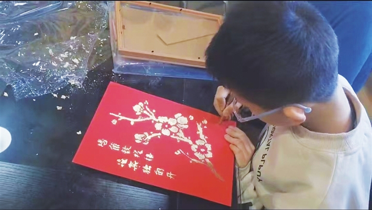 烧箔画起源于唐代,并在明清时期达到兴盛。作为一种民间艺术,烧箔画以其独特的工艺制法、惊艳的色彩以及丰富立体的表现力在传统艺术中独树一帜。活动现场,社区邀请专业教师为大家详细介绍了烧箔画的历史渊源和制作工艺。随后,小朋友们用专门模板在红色卡纸上描绘图案,再用胶水将图案涂满,等待胶水半干后,再把烧箔铺在版面上,随后压实、清扫多余箔料,很快,一幅幅流光溢彩的烧箔作品展现在大家眼前。这些作品各具特色,有的色彩搭配独特、有的作品造型独特、有的作品故事韵味十足。