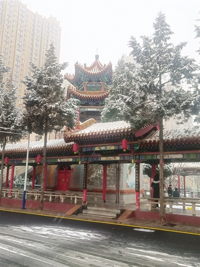 许多外地游客在春节前来到太原,感受“年味游”,其中有不少是南方游客。侯果果来自广西,上午走出机场航站楼,外面纷纷扬扬地飘着雪花,这座城市被一层白纱轻轻覆盖,仿佛换上了新装。她觉得很幸运,在雪花的映衬下,更能体现太原的古韵和历史文化底蕴。