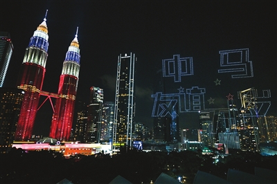 1月25日,在马来西亚吉隆坡举行的2025年“欢乐春节”全球启动仪式前,无人机展示“中马友谊万岁”字样。2025年“欢乐春节”全球启动仪式暨“欢乐春节 五洲同欢”演出25日晚在马来西亚吉隆坡举行。