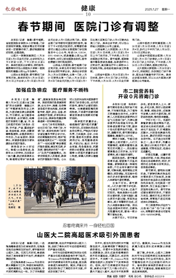 春节期间 医院门诊有调整