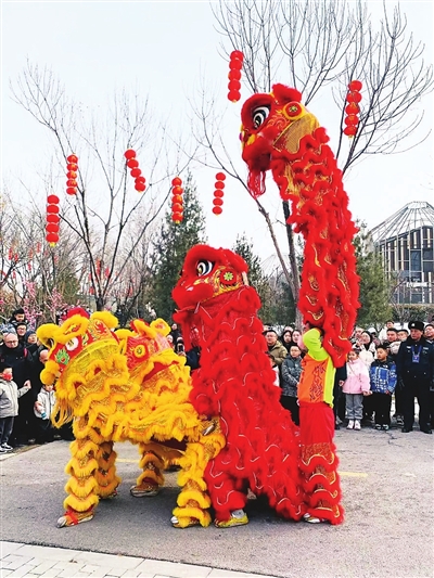 2月5日上午,记者在现场看到,大红灯笼高高悬挂,造型别致的蛇年主题装饰错落分布,熙熙攘攘的人群中笑声不断,处处洋溢着浓浓的年味儿。其中,最引人注目的莫过于独具地方特色的传统社火表演“背棍”。只见一个个身材壮硕的背棍表演者,肩上扛着特制的铁棍,棍上稳稳立着一个身着华丽服装的小演员。他们时而行走,时而跳跃,棍上的小演员随着背棍表演者的步伐变换各种姿态,仿佛在空中翩翩起舞,赢得游客的阵阵喝彩。非遗文创区,剪纸艺人手指翻飞,一把剪刀、一张红纸,便能变幻出花鸟鱼虫、人物故事;糖画师傅以勺为笔、以糖为墨,在石板上快速勾勒出各种图案;面塑、烫画等非遗代表性传承人也不甘示弱,纷纷展示着自己的拿手绝活……