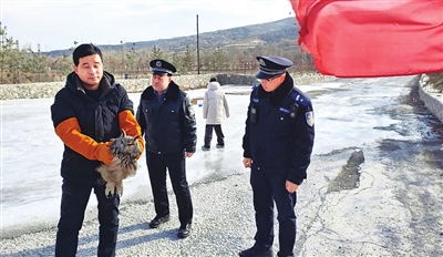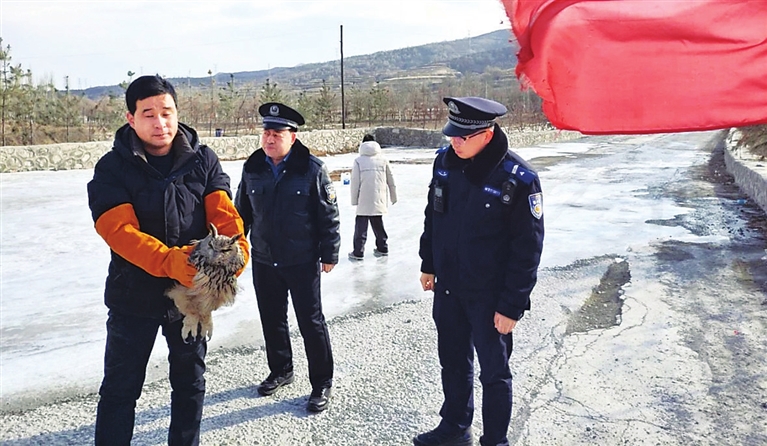 “警察同志,我在厂区门口发现一只猫头鹰,它可能受伤了,请你们快来看看!”2月1日中午,一名工人发现一只受伤猫头鹰后报警求助。民警、辅警赶到现场,在一处草堆中看到了那只蜷缩着的猫头鹰。民警小心翼翼靠近,仔细观察发现,猫头鹰腿部受伤。考虑到天气寒冷,猫头鹰因伤无法自行离开,民警、辅警一边想办法救助,一边联系专业人士。娄烦县林业局工作人员赶到后,民警、辅警将猫头鹰交由他们带回救助站进行专业的精心照料,待其完全康复后放归大自然。