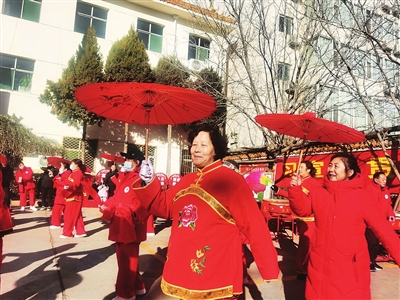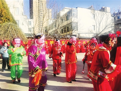 同日,范家堡社区人声鼎沸,热闹非凡。社区工作人员与居民们身穿艳丽的服装,个个神采飞扬,将新年的喜悦都写在了脸上。伴随着雄浑的鼓点声,大家扭起了秧歌。他们的步伐轻盈而欢快,身姿灵动而优美,手中的彩绸在空中划出一道道美丽的弧线。喜庆热闹的气氛感染了在场的每一个人。居民王先生难掩兴奋地说:“听说今天有活动,我早早就来到小广场,扭秧歌和锣鼓表演都特别棒,真是热闹极了!”