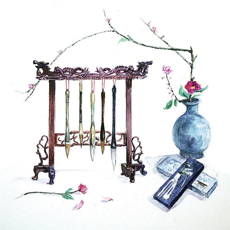 梅花新春凌寒开放,人们赋予它高洁的品性,喜爱倾慕者众多。古来作家画家,写梅的名句、画梅的名画不少。插梅,也成了雅事。《红楼梦》里,一场大雪,宝玉去栊翠庵,找妙玉折了一枝梅插在“美女耸肩瓶”里,“花吐胭脂,香欺兰蕙”,众人对梅赋诗,好一场富贵风流。